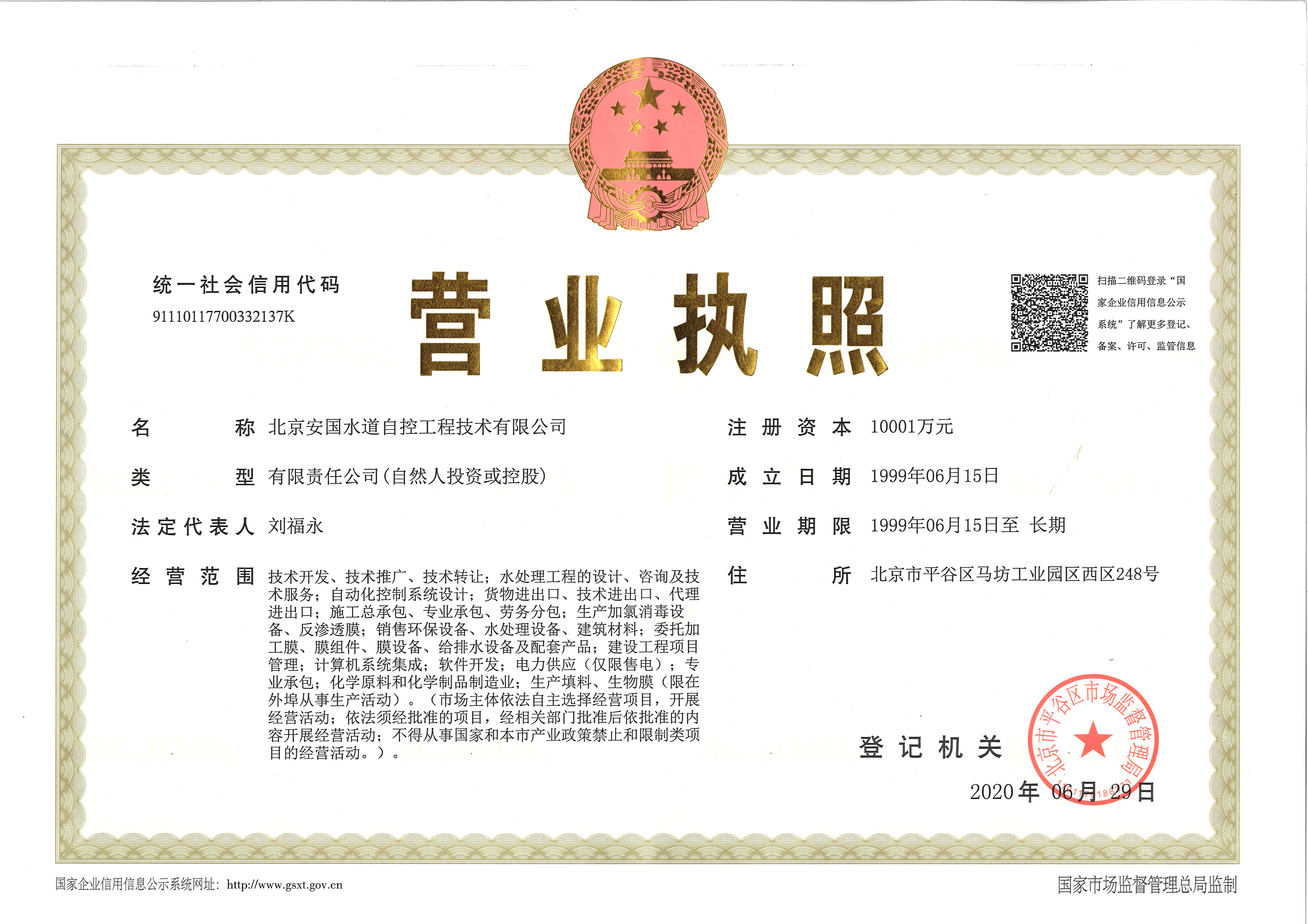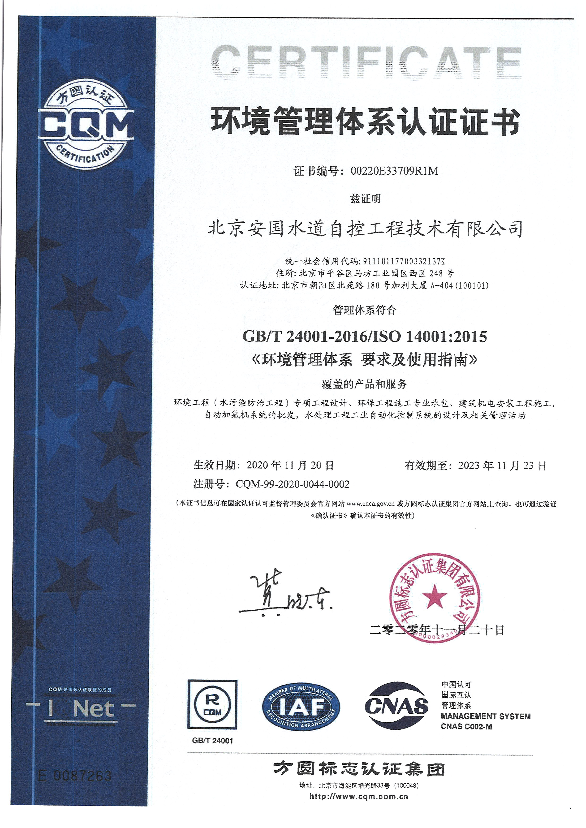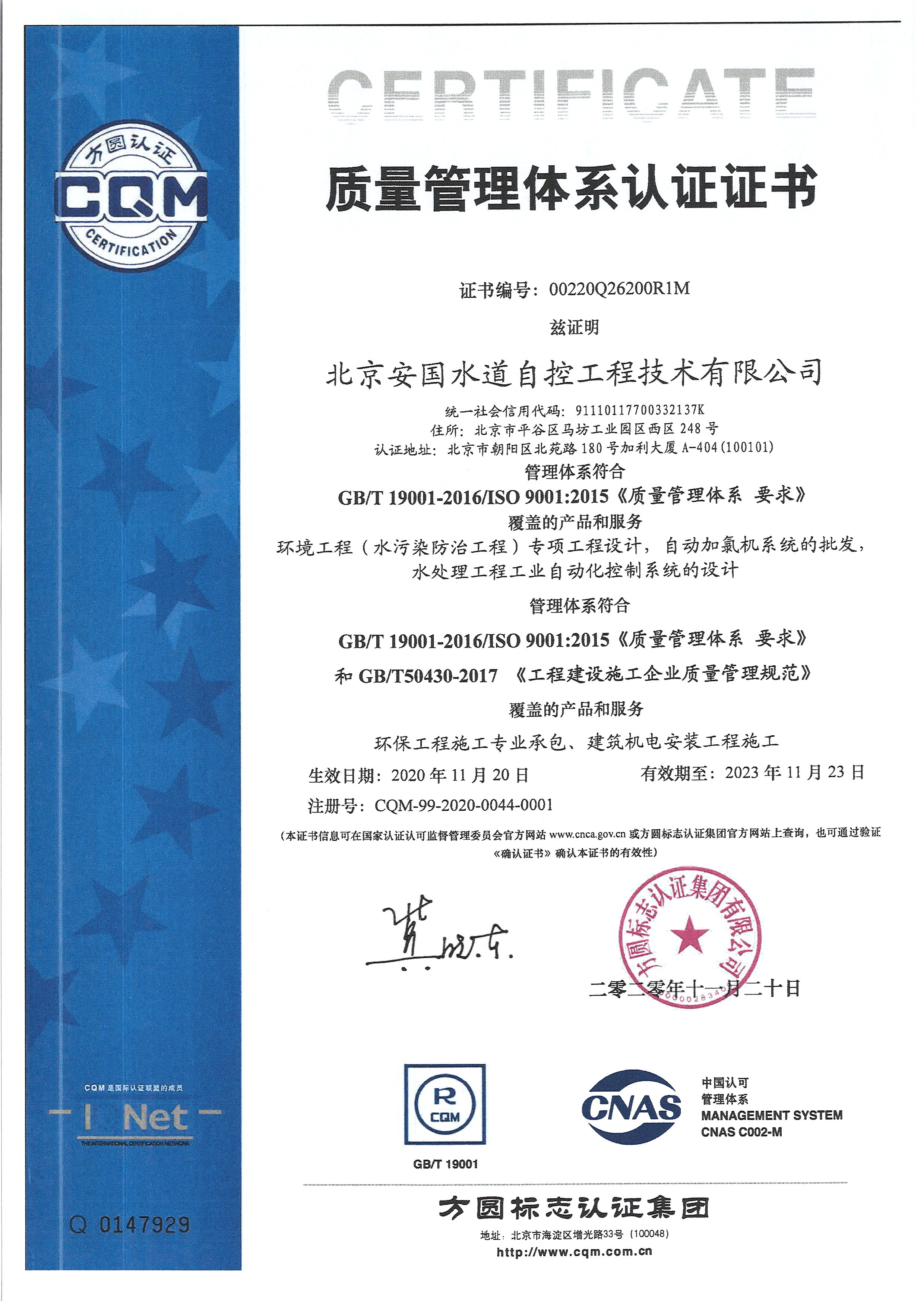 北京安國水道自控工程技術(shù)有限公司2015年入駐中國給水排水品牌委員會(huì)