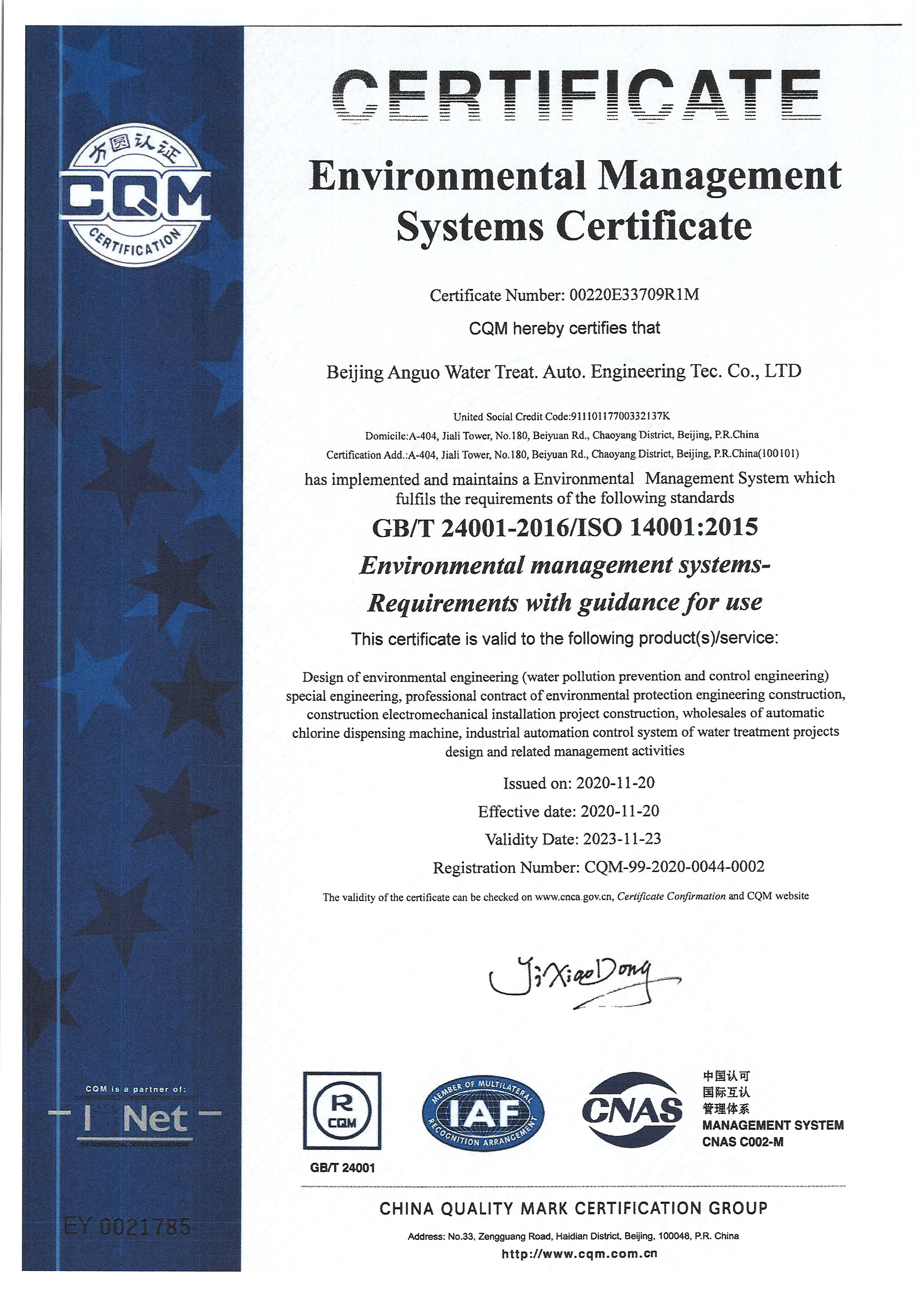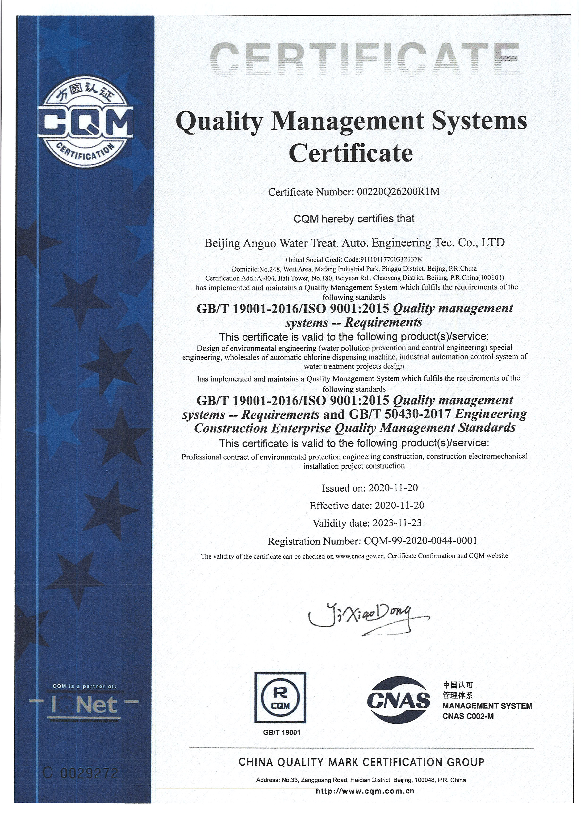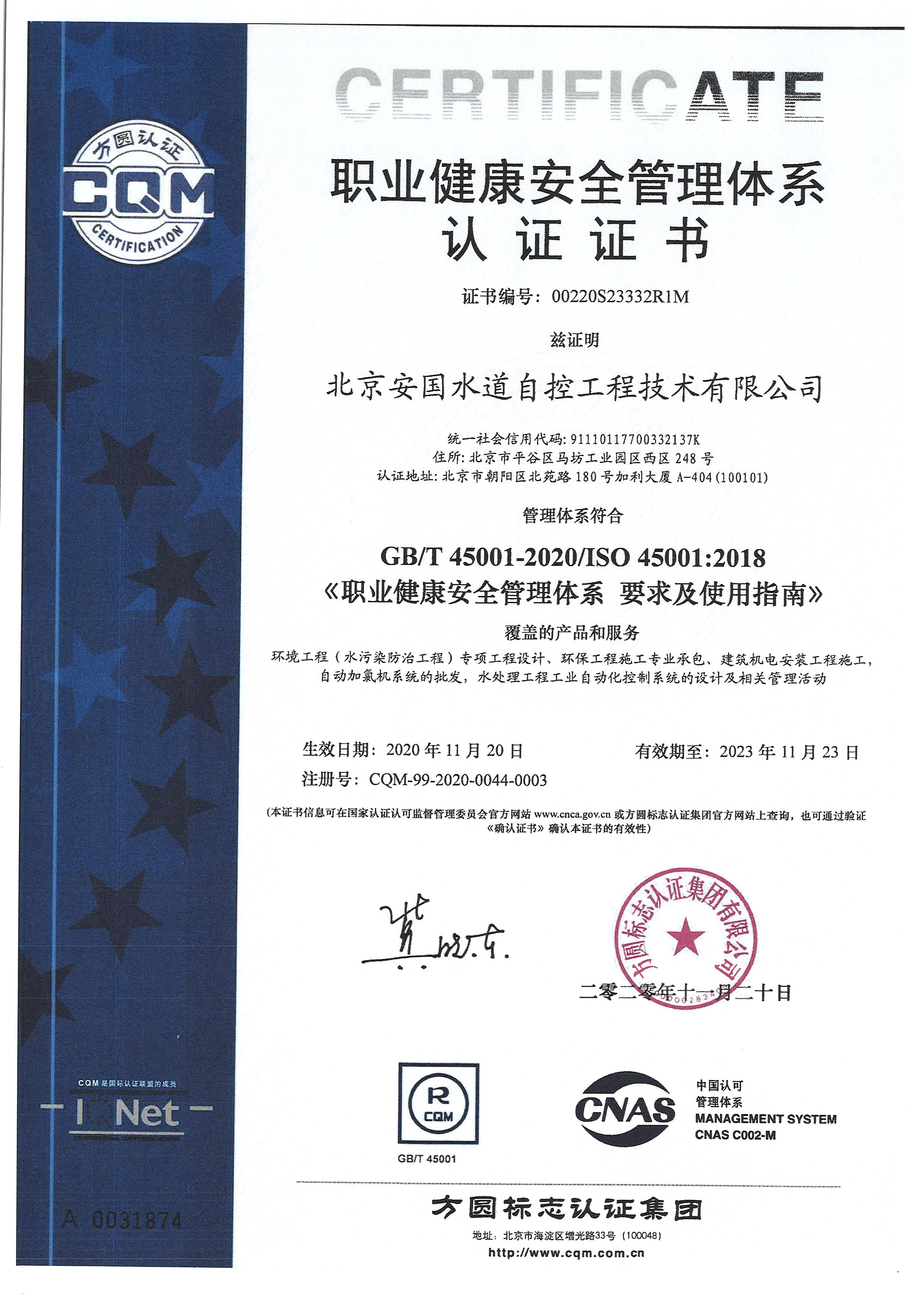 北京安國水道自控工程技術(shù)有限公司2015年入駐中國給水排水品牌委員會(huì)