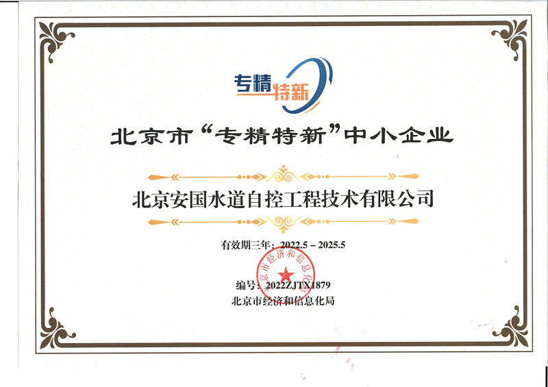 • 喜訊/安國水道獲得“北京市專精特新中小企業(yè)”稱號(hào)
